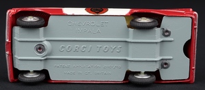 Chevrolet Fire Chief Car by Corgi Toys, No. 439. Near mint plus/boxed. Rare find with GLOSSY circular red door labels on white doors. From The Coastline Collection.