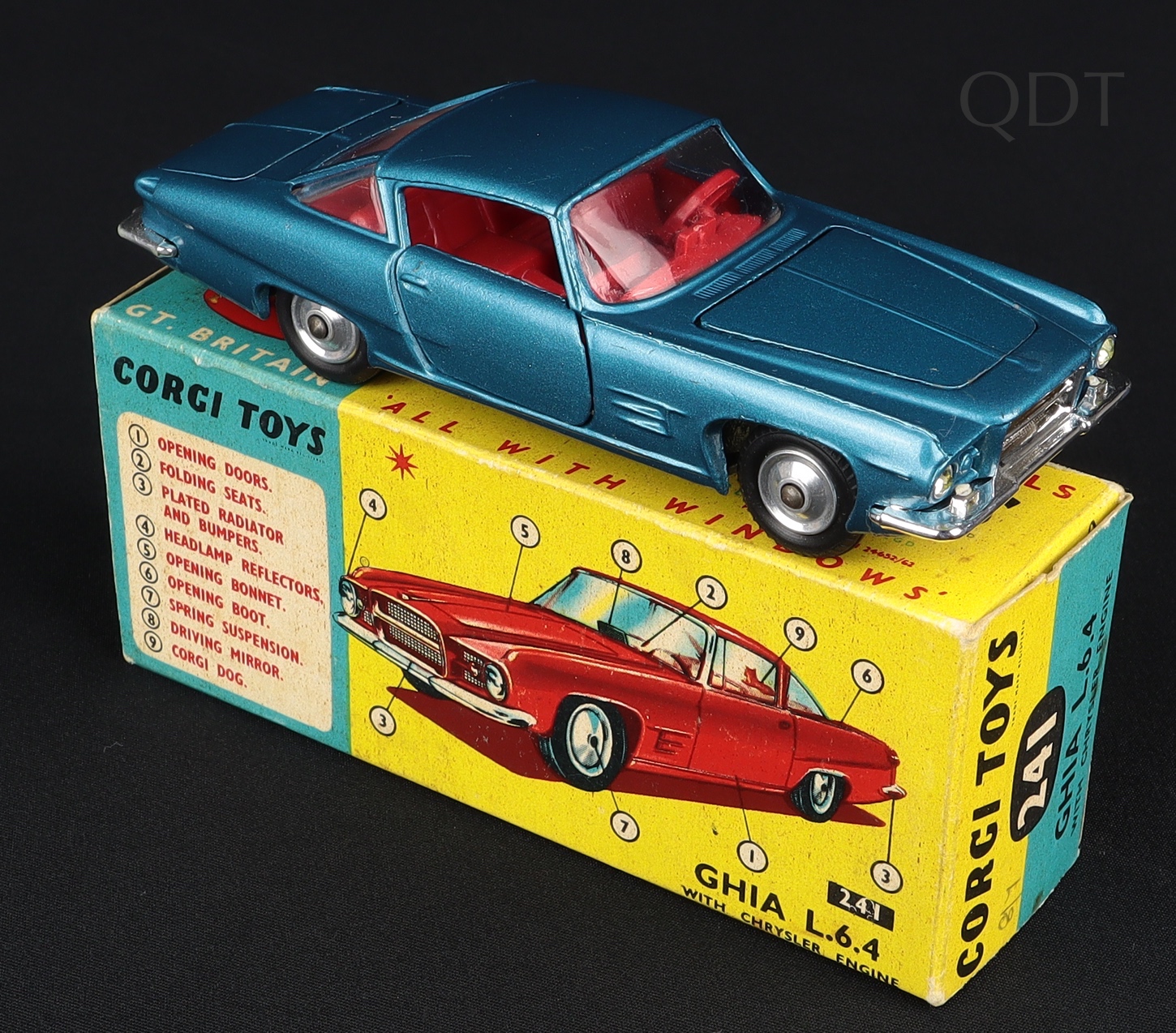 Ghia L6.4 by Corgi Toys, No. 241. Very near mint/boxed. Mid-metallic blue version. From The Coastline Collection.