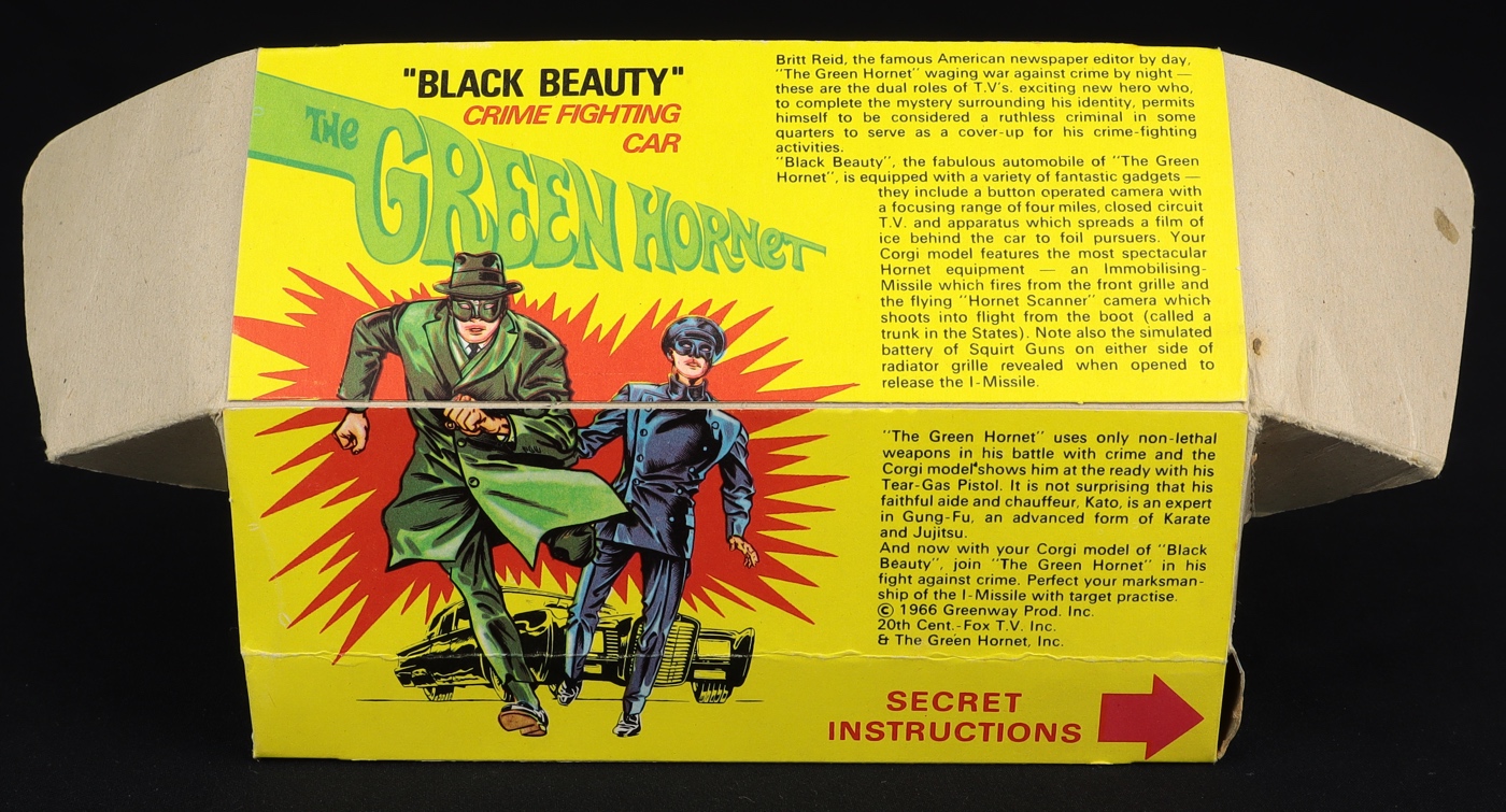 The Green Hornet's 'Black Beauty' by Corgi Toys, No. 268. With working functions! Near mint plus/boxed, with rockets & spinners. Spun wheels issue. From The Woodside Collection