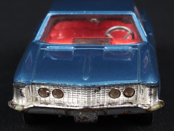 A scarce find in this intense deep blue shade. Red interior, Trans-O-Lite front and rear lights. Spoked wheels.