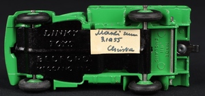 This attractive Bedford truck has a fine and original mid green finish with a gloss black radiator and bumper. Issued during 1954. A fine lustrous sheen to the paint finish, intact radiator with both headlights, early smooth tyres, tow hook and bright baseplate.