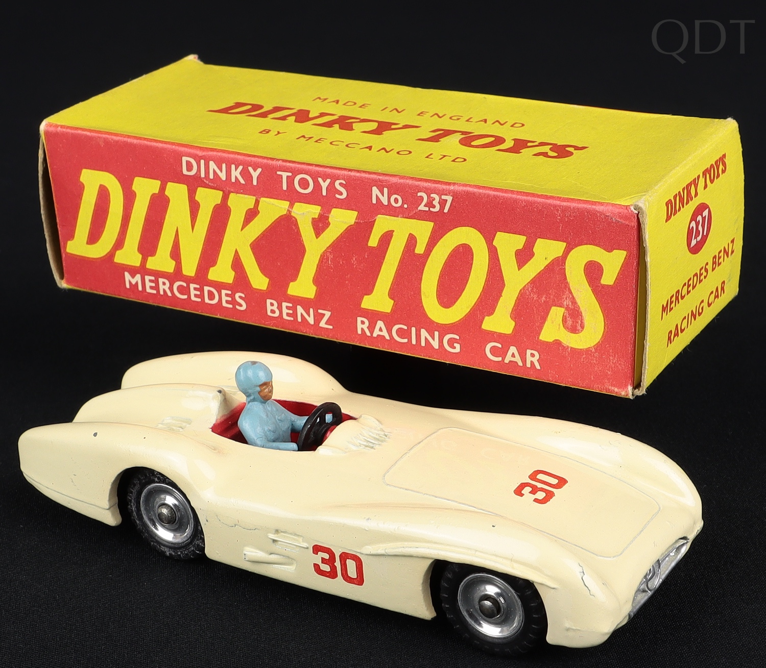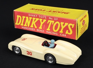 Mercedes-Benz Racing Car by Dinky Toys, No. 237. Scarce DEEP CREAM version, SPUN HUBS. Very near mint/boxed. From The Fenman Collection.