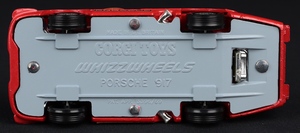 This Porsche model has a vivid red finish with complete labels, blue-tinted glass, detailed silver engine and spoked Whizzwheels.