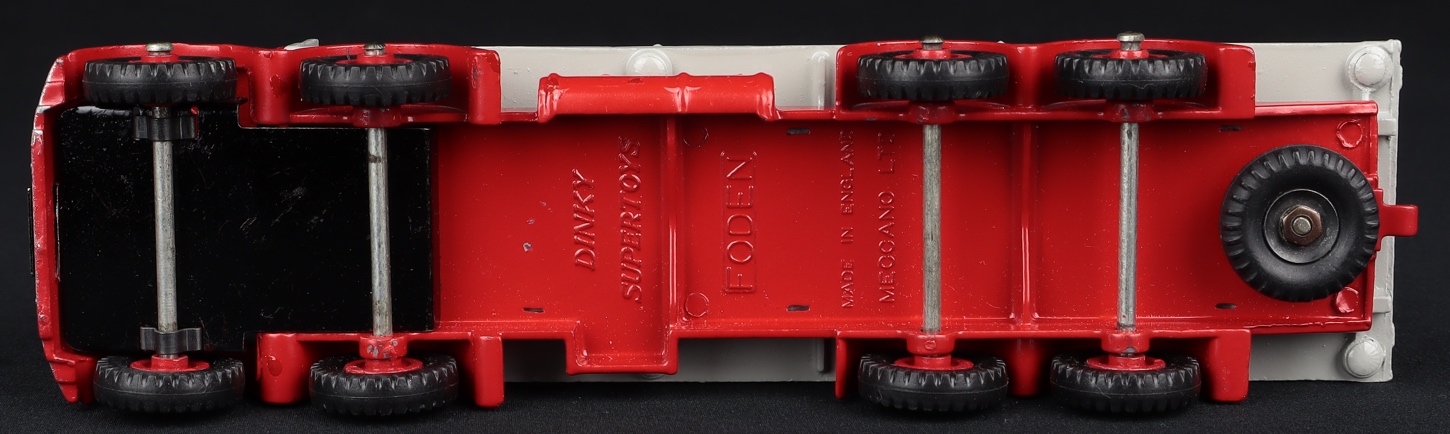 Foden Flat Truck with Chains by Dinky Toys, No. 905. Red and grey issue, with bolt fixing. Near mint plus/boxed. From The Sherwood Collection.