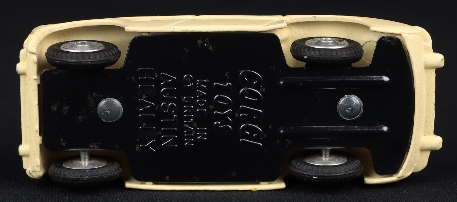 Austin Healey Sports Car by Corgi Toys, No. 300 Very, very near mint/boxed. Scarce cream issue, DEEPER RED seating, shaped spun wheels, silver steering wheel. From The Island Collection.