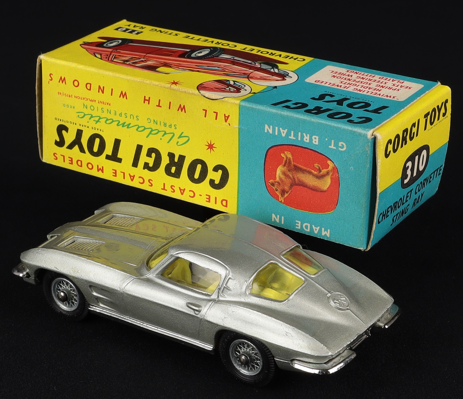 Chevrolet Corvette Sting Ray by Corgi Toys, No. 310. Mint/boxed. Silver version with spoked wheels. From The Bluehouse Collection.