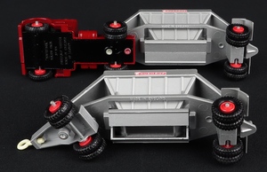 Looking completely unused, this two-part set has a deep glossy red and silver finish, with complete ‘FRUEHAUF’ labels throughout. Red plastic wheels and fine original black treaded tyres.