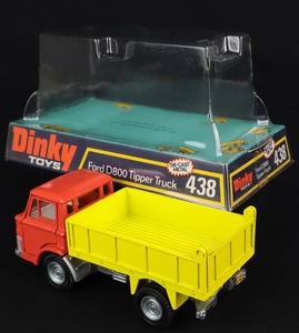 Ford D800 Tipper Truck by Dinky Toys, No. 438. Very near mint/boxed (bubble pack). Scarce orange & yellow issue with WHITE interior. From The Reference Collection.