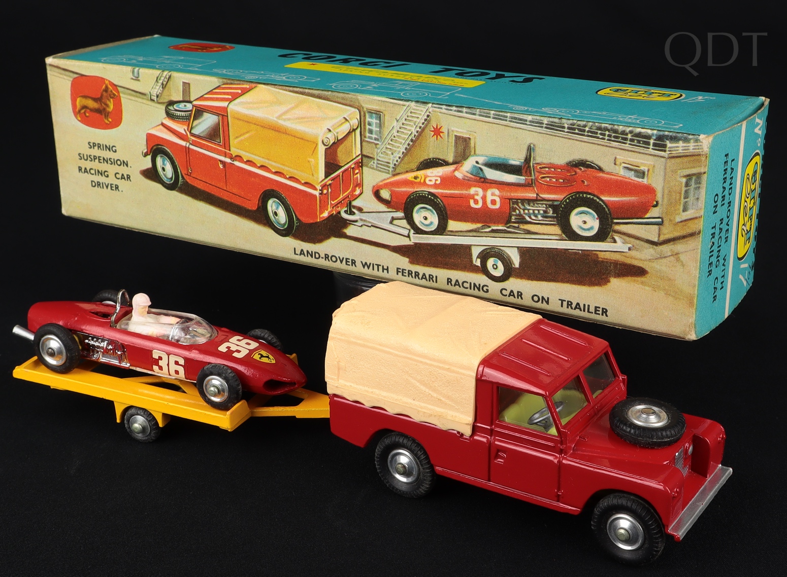 Land-Rover with Ferrari Racing Car on Trailer by Corgi Toys, Gift Set No. 17. Very near mint generally/boxed. From The Reference Collection.