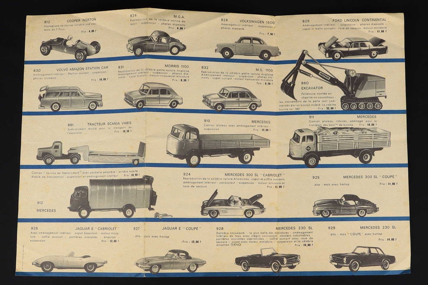 6) Blue & white Tekno Leaflet with handwritten date 12/65. Opens out into a small poster with model illustrations and prices. Light wear includes a stain. No tears or graffiti. Near mint.