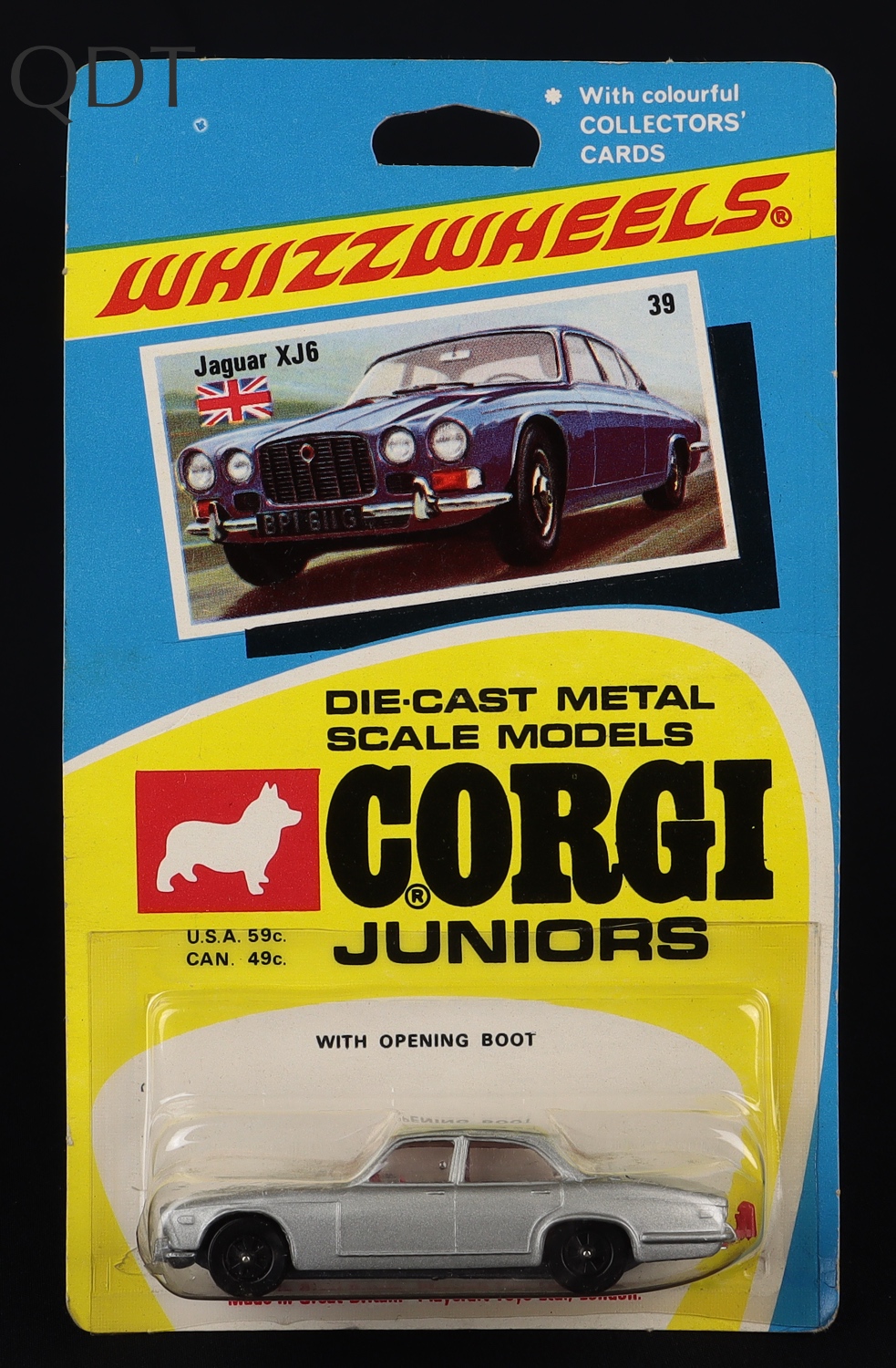 Jaguar XJ6 by Corgi Juniors, No. 39. Silver version with black wheels/tyres. Mint/boxed. From The Off-shore Collection. QDT starting bid £75. Please note that QDT apply 12.5% buyer's commission.