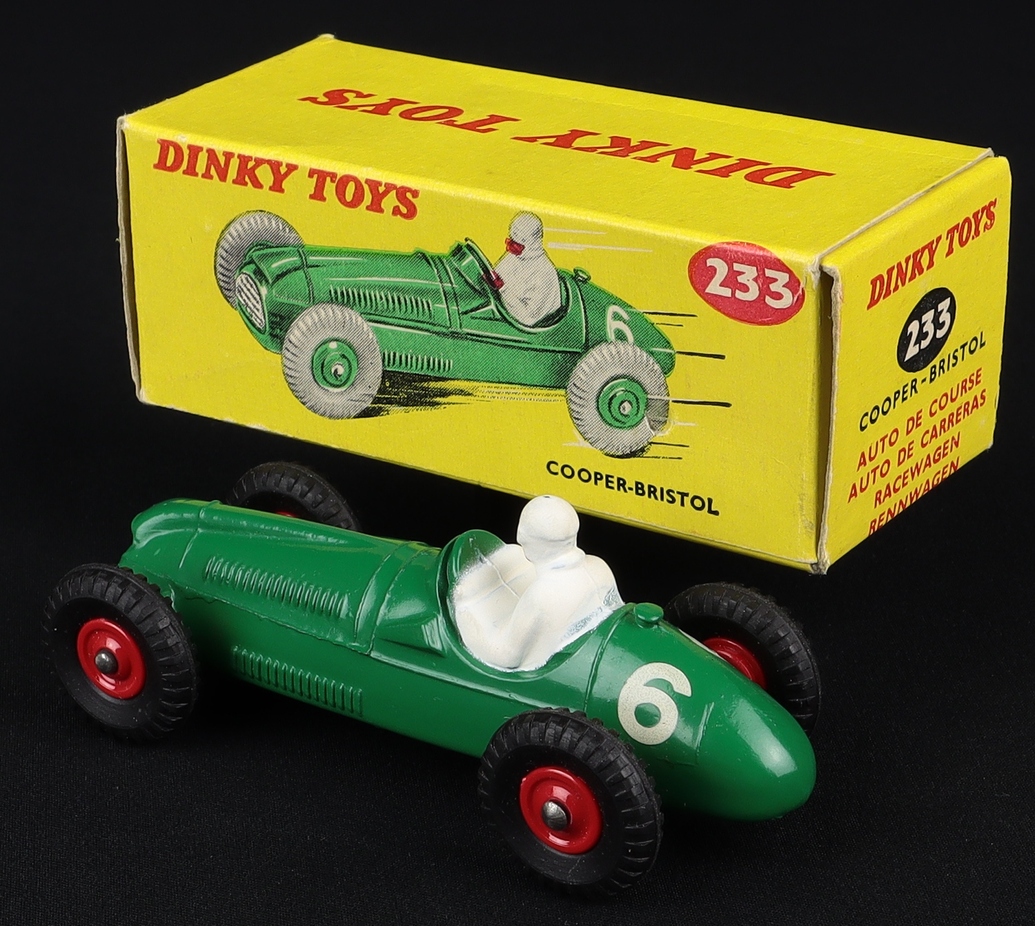Cooper Bristol by Dinky Toys, No. 233. Very near mint/boxed. Scarce version with red plastic wheels. Scarce version! From The Cologne Collection. Starting bid £150. Please note that QDT apply 12.5% buyer's commission.