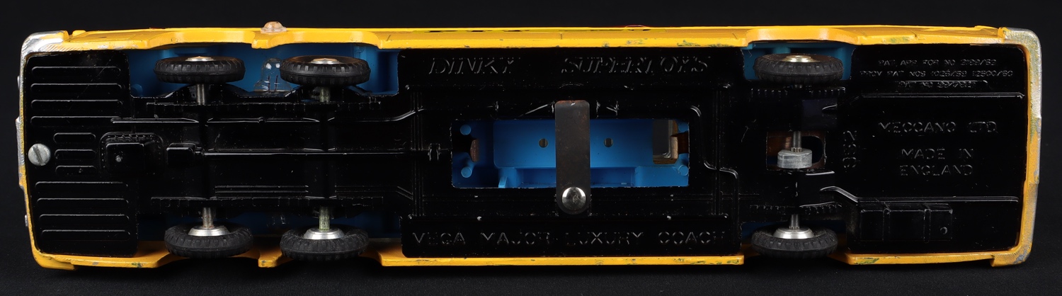 Not an easy variation to find, this ‘Swiss Postal’ version of the Vega Major Coach has a vivid all original deep yellow and cream finish with complete paper labels at both sides. Bright blue seating and a shiny black base.