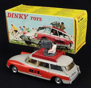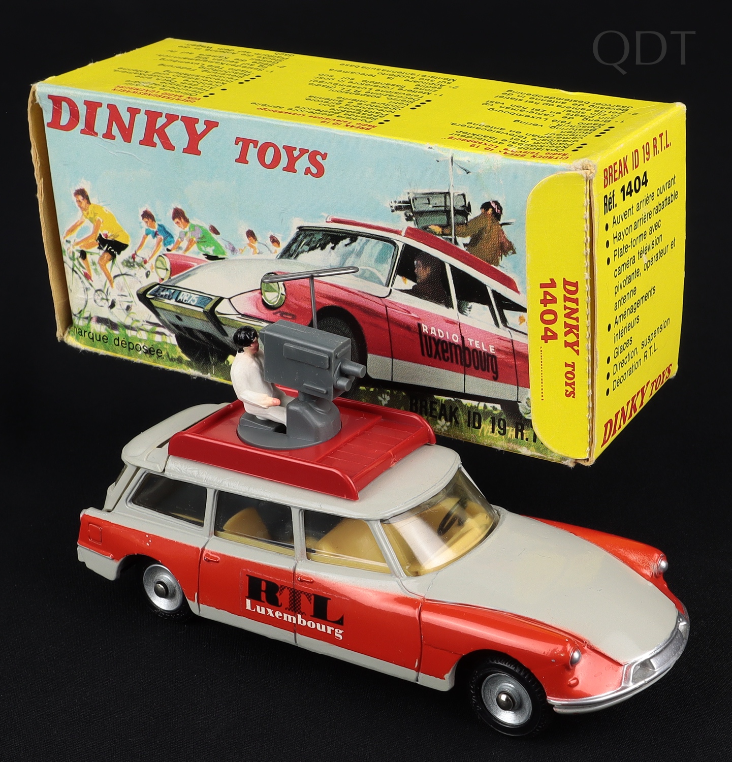 French Dinky 1404 Citroen ID19 Estate Car 'Radio Tele Luxembourg'. Very near mint/boxed. Scarce 2nd Issue. Complete with original aerial, packet & packing ring. From The 25 Year Collection in California. Starting bid £350. Please note that QDT apply 12.5% buyer's commission.
