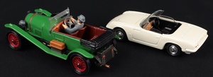1)John Steed’s Bentley in green and black finish, correct for this set with red metal wire wheels. Complete with all parts, and including the figure of John Steed at the wheel. Note this example even has both formed plastic pieces at the top of the windscreen! (Invariably either one or both is missing). Fine original tyres.