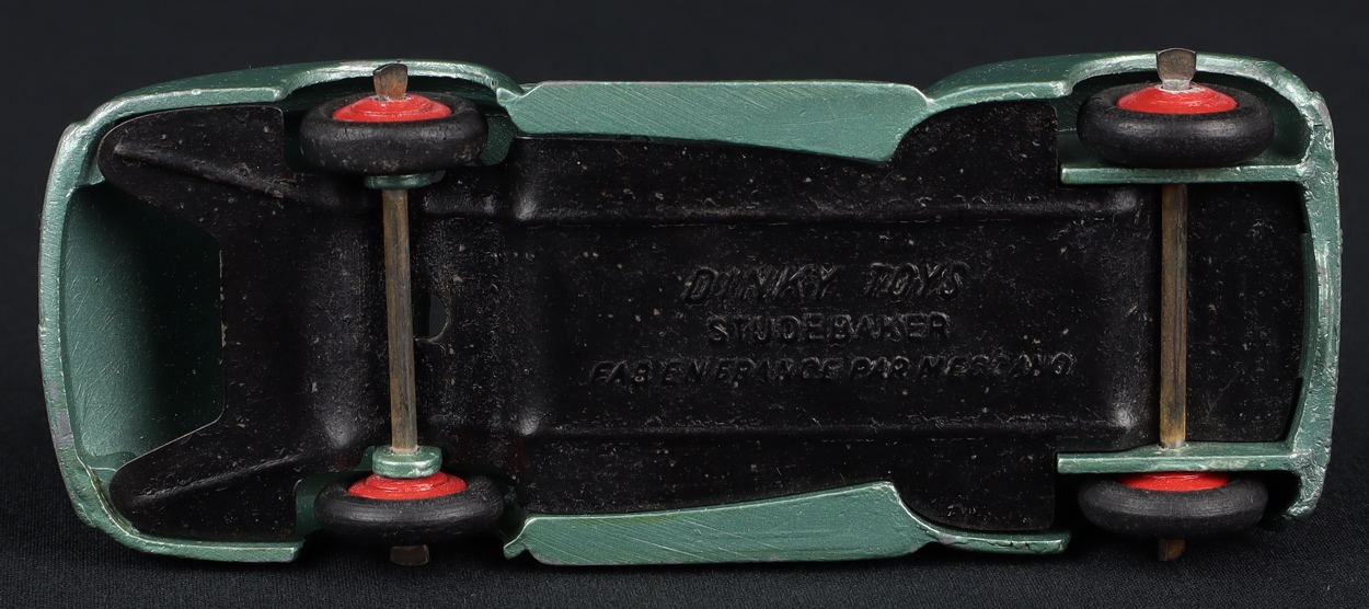 Issued for just one year (1949) , this French Dinky State Commander has a distinctive light metallic blue-green finish, silver trim and red cast wheels, smooth black tyres.