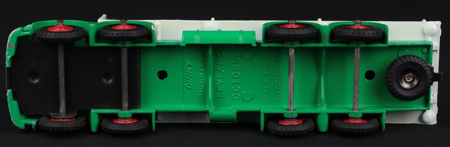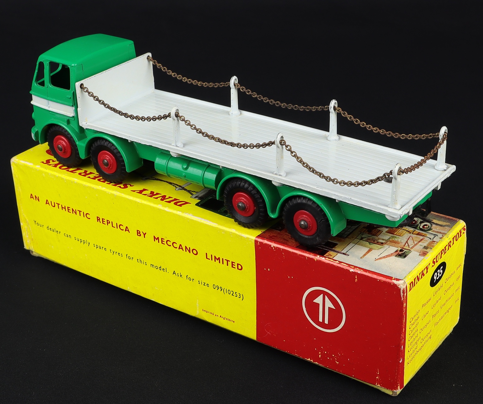 Leyland Octopus Flat Truck with chains by Dinky Toys, No. 935. Scarce green and pale grey version. Near mint plus/boxed. From Boris's Collection.