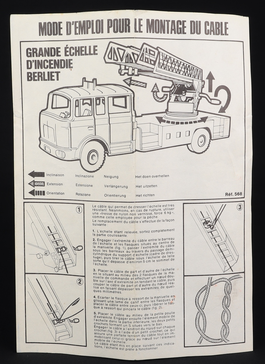 Berliet Fire Escape by French Dinky Toys, No 568. Very near mint/boxed, with packing & Instruction Leaflet. A sought-after model. From The Island Collection. Starting bid £200. Please note that QDT apply 12.5% buyer's commission.