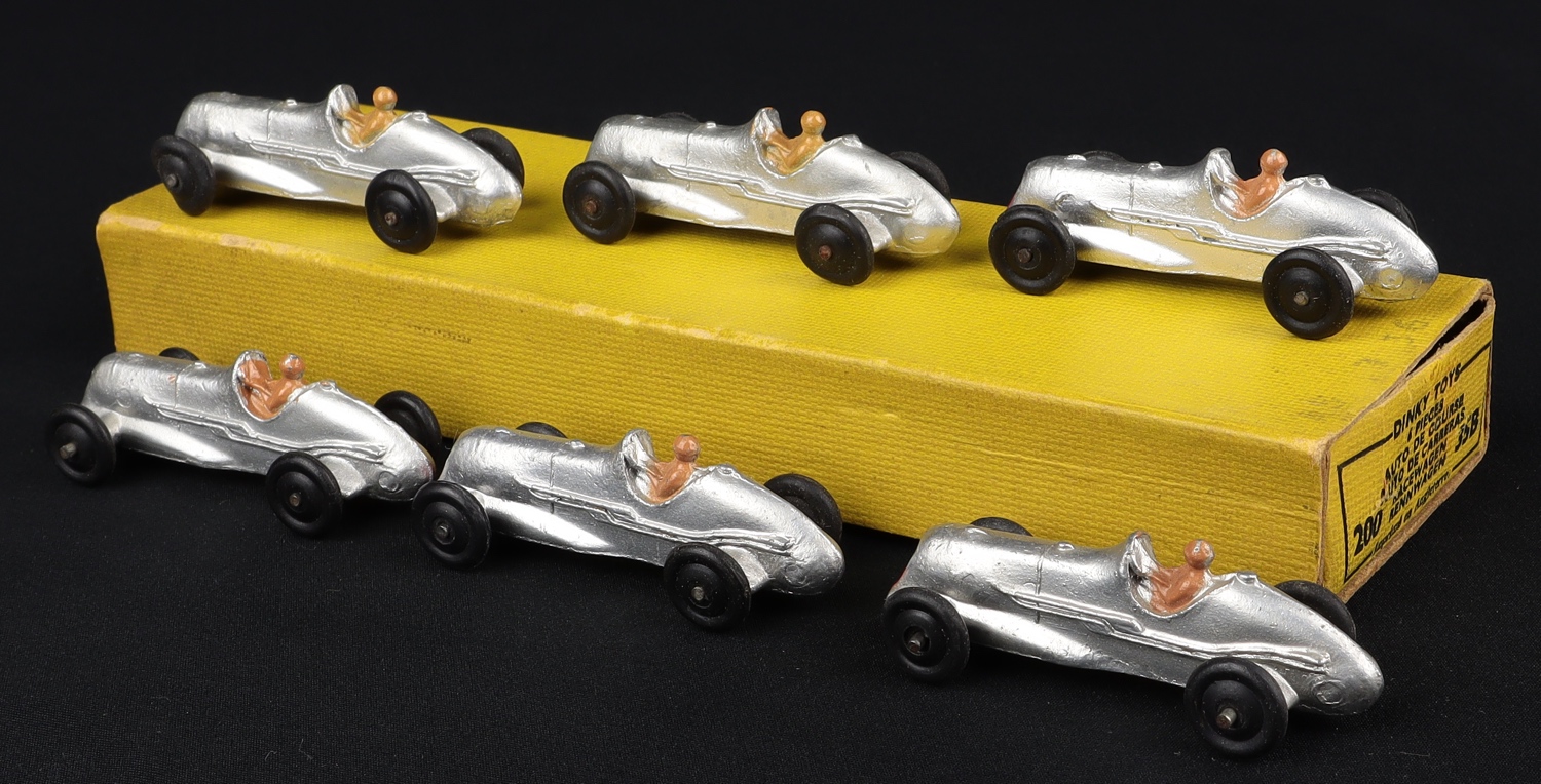 6 x endearing little Dinky Racers in gleaming original condition and each measuring a mere 6cms (approx).