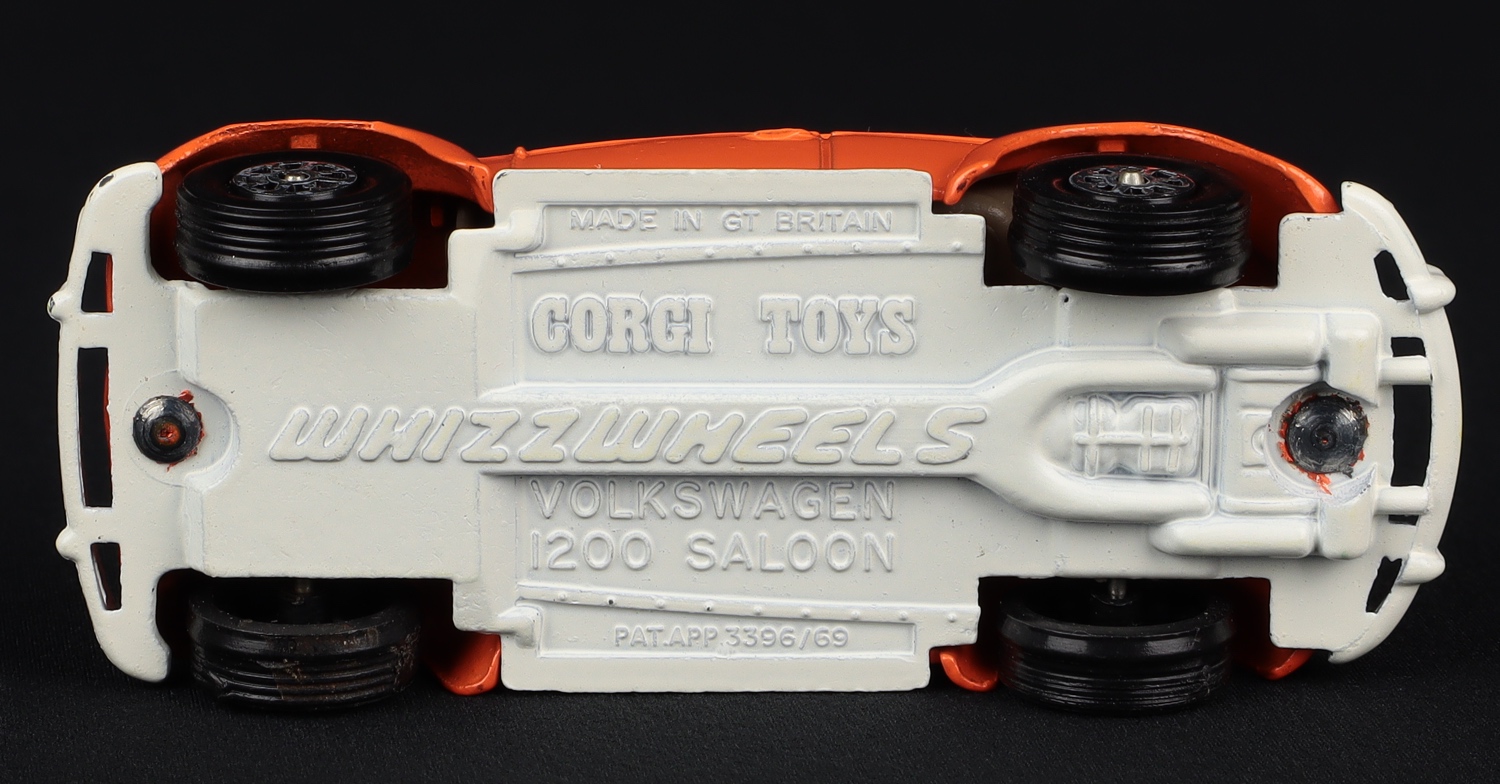 Volkswagen 1200 by Corgi Toys, No. 383. A rare find in orange with an OLIVE interior with WHITE base & bumpers. Very, very near mint/boxed. With Whizzwheels. From The Gower Collection. Starting bid £150. Please note that QDT apply 12.5% buyer's commission.