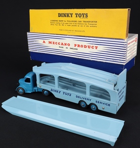 Pullmore Car Transporter by Dinky Toys, No. 982 & 974 Loading Ramp. Early issue without windows. Generally very near mint/boxed, with D974 Loading Ramp (in sleeve-style box). Very, very near mint/boxed. From The Reference Collection.