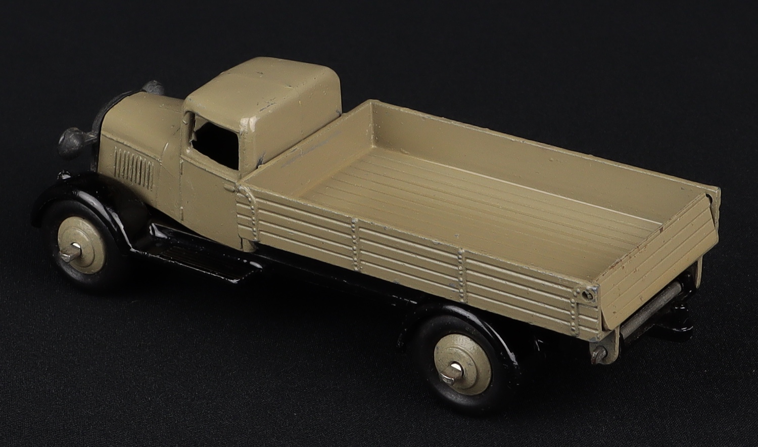 This lorry has a lustrous original fawn (not grey) finish with an intact radiator and headlight assembly, and front bumper. A more difficult find with fawn wheels: