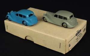2 x Triumph 1800 Saloons in Dinky Trade Box, with original dividers. Both 1st issues with rear axle held by cast pillars. Near mint/never boxed individually. Scarce. From The Reference Collection.Starting bid £150. Please note that QDT apply 12.5% buyer's commission.
