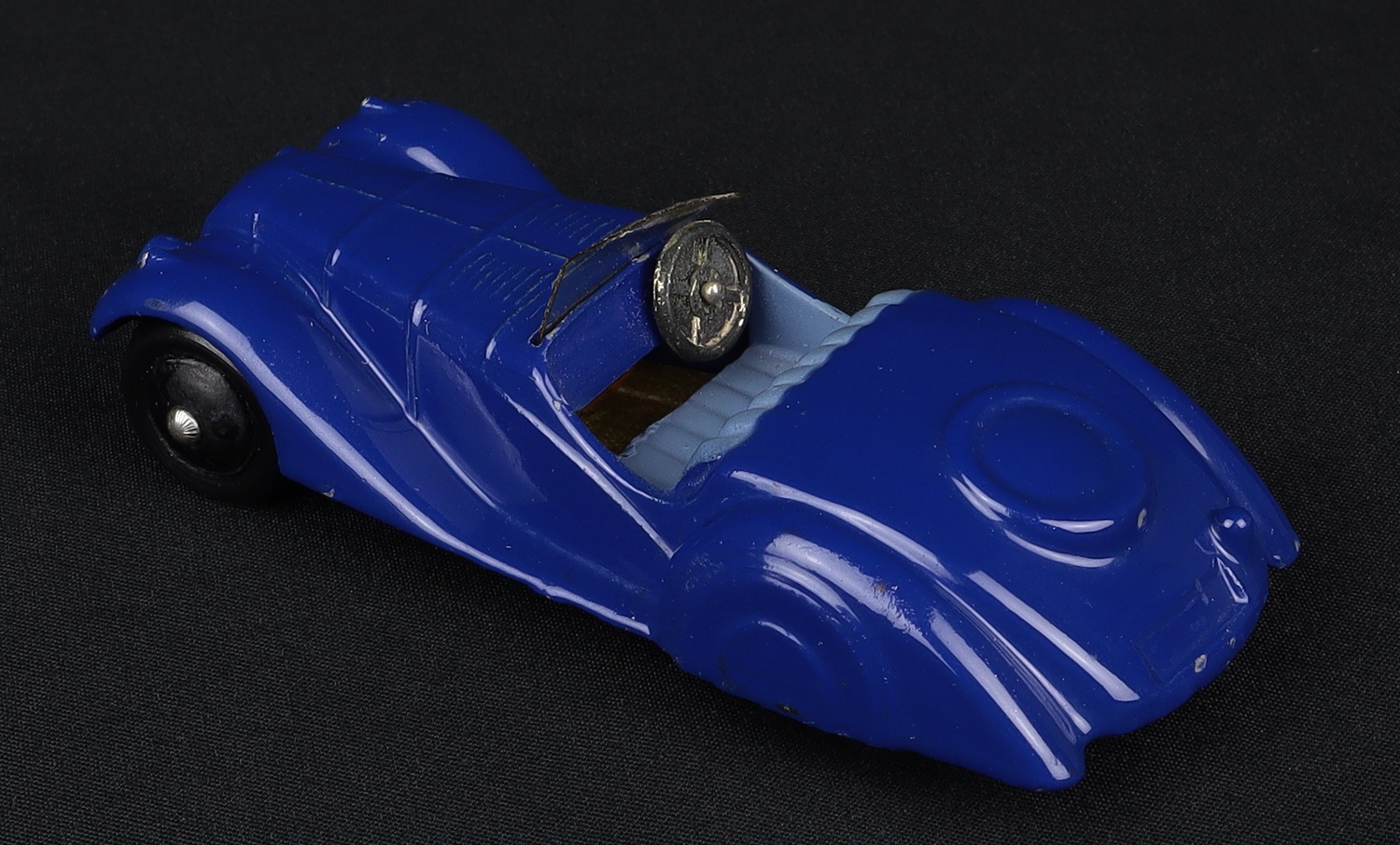Frazer Nash BMW Sports by Dinky Toys, No. 38A. Scarce COBALT BLUE issue with LAVENDER BLUE seats & SMOOTH black wheels. EARLY solid steering wheel. Special issue from 1946. Very near mint/never boxed individually. From The Cologne Collection. QDT starting bid £150. Please note that QDT apply 12.5% buyer's commission.