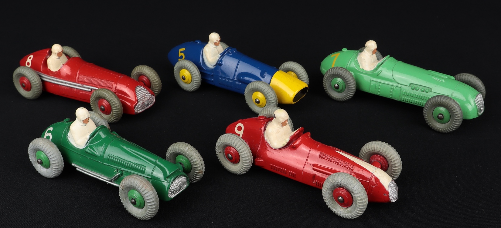 Each racing car is set on the original slotted card insert which is clean and complete. Printed lettering is crisp and bright.