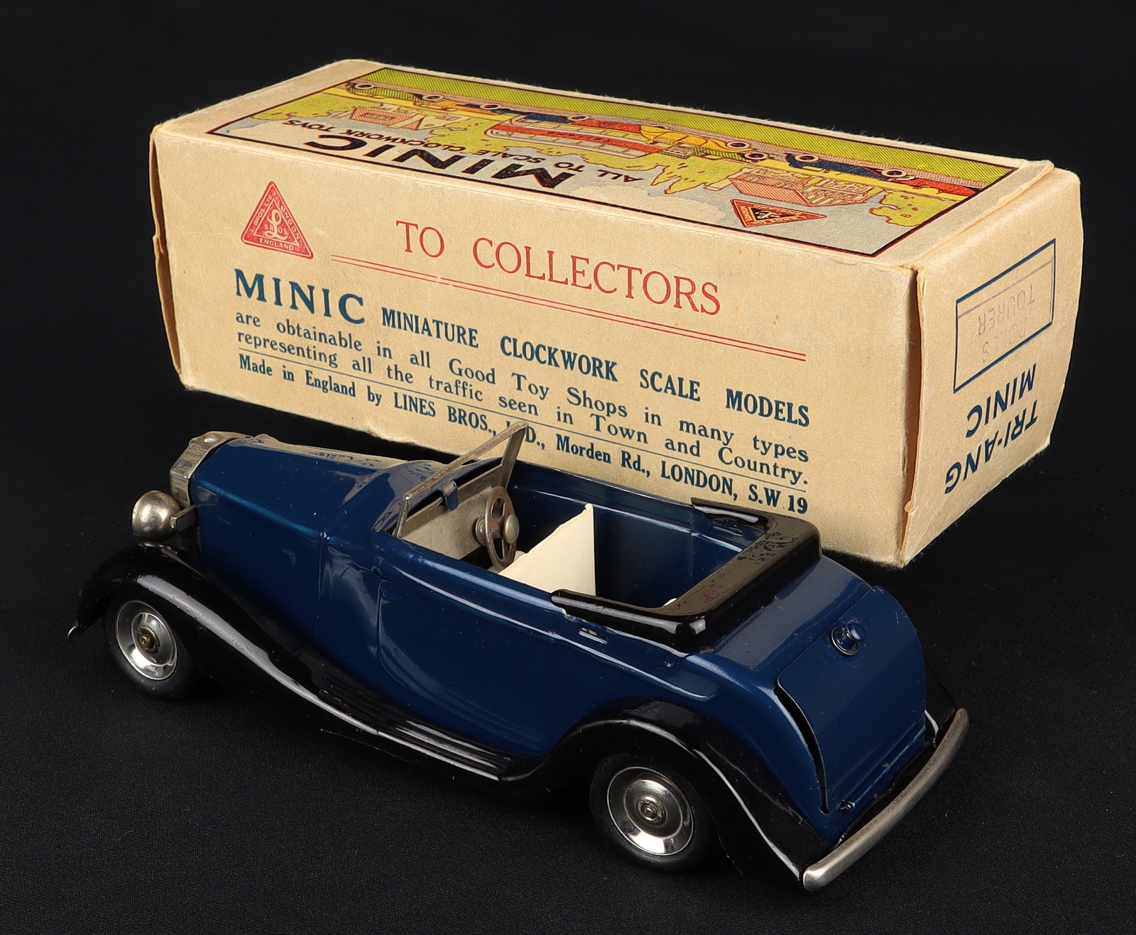 Rolls Royce Tourer by Tri-ang Minic, No. 118M. Working clockwork motor. Very near mint/boxed. Scarce & a First for QDT! From The Denis Tyler Collection. Starting bid £200. Please note that QDT apply 12.5% buyer's commission.