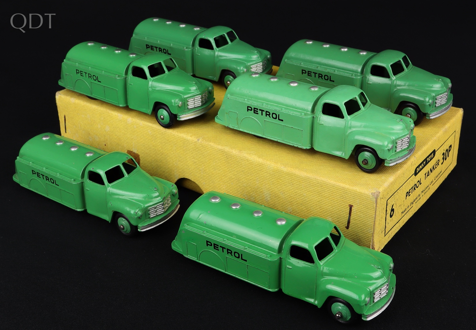6 x Petrol Tankers by Dinky Toys, No. 30P in original Trade Box with original dividers. Near mint - very near mint. Scarce item from The Reference Collection. Starting bid £300. Please note that QDT apply 12.5% buyer's commission.