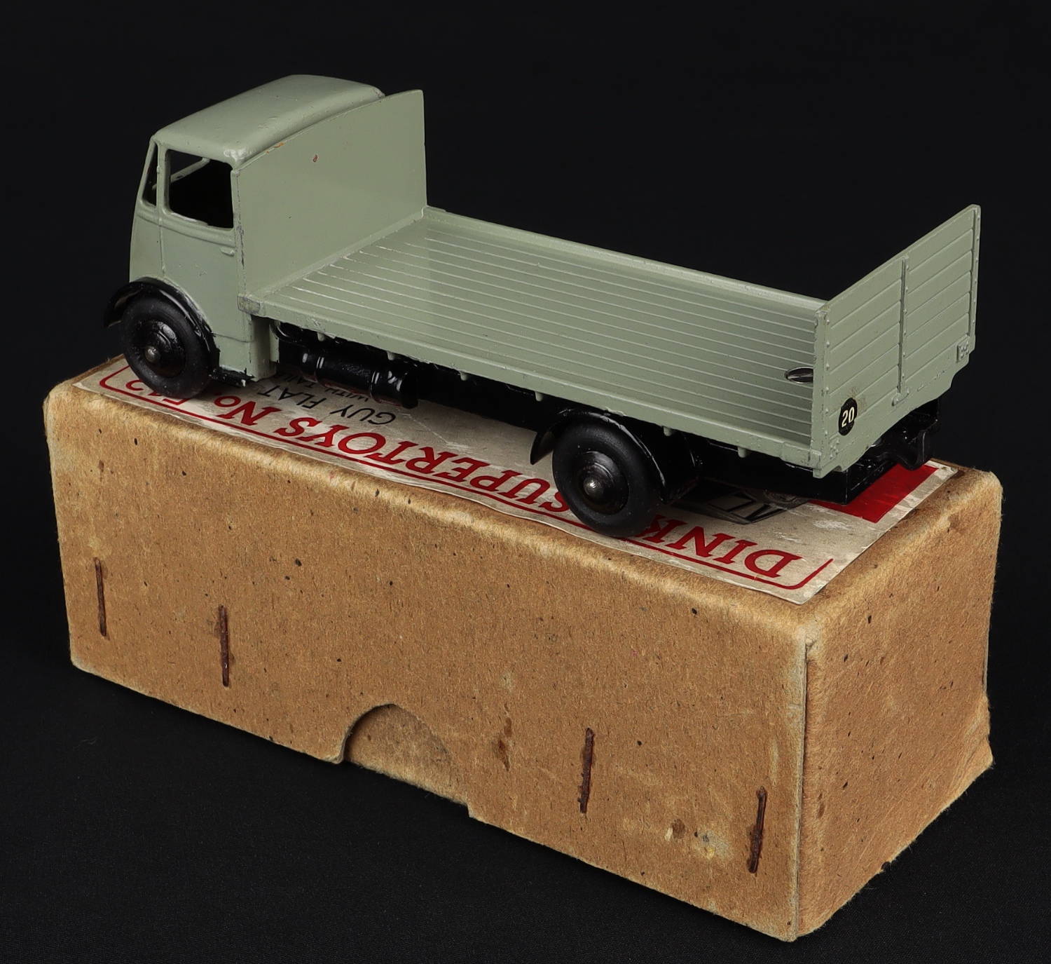 Guy Flat Truck with Tailboard by Dinky Toys, No.513. Scarce early issue in grey and black. Very near mint/boxed. From The Denis Tyler Collection. Starting bid £250. Please note that QDT apply 12.5% buyer's commission.