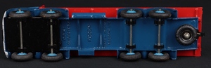 Red flatbed and flash, lighter blue ridged wheels.