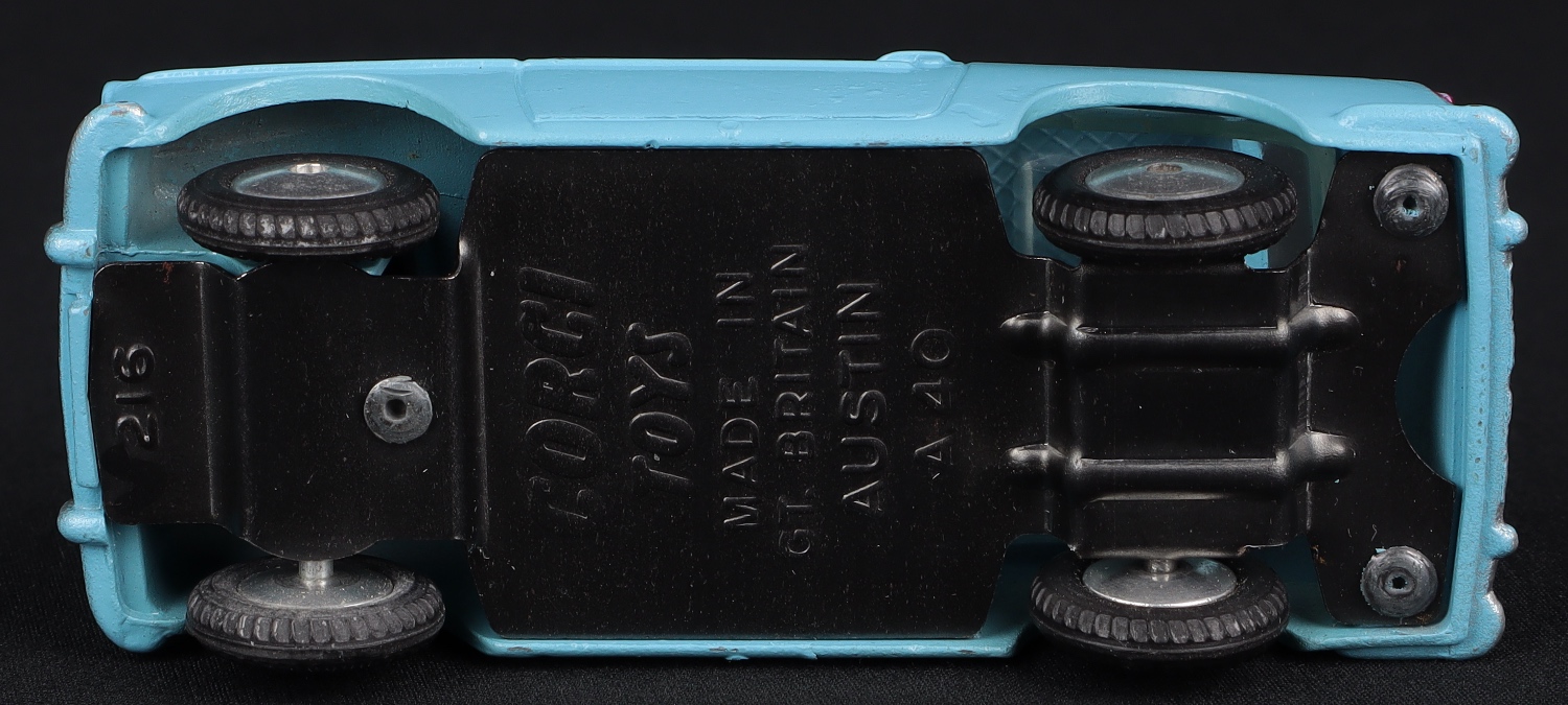 Austin A40 by Corgi Toys, No. 216. Two-tone blue issue with flat spun wheels. Very near mint/boxed.