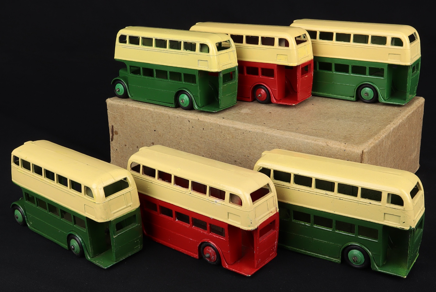 Double Deck Buses x 6, Dinky Toys, No. 29C in original Dinky Trade Box. Near mint (3) - near mint plus (3). All 3rd Types. From an eclectic collection. Starting bid £250. Please note that QDT apply 12.5% buyer's commission.