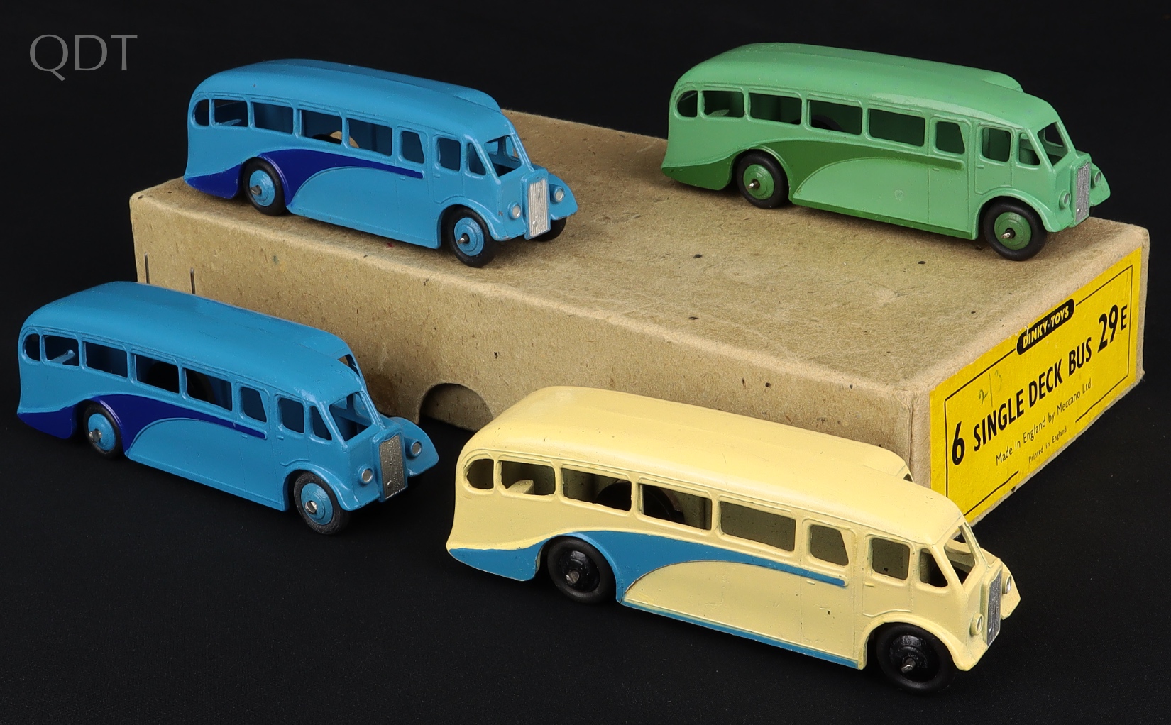 Trade Box 4 x Dinky 29E Single Deck Buses (various) . Near mint plus - very near mint/in original Dinky Trade Box. From The Denis Tyler Collection. Starting bid £200. Please note that QDT apply 12.5% buyer's commission.