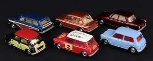 5) Corgi 321 Austin Mini-Cooper in red with roof signatures of Timo Makinen and Paul Easter. Excellent plus with scattered light chipping. All four jewelled lights and virtually complete – complete transfers throughout.