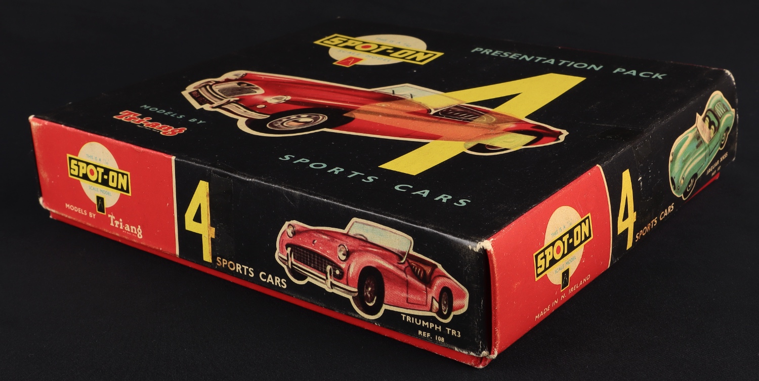 Spot-On Presentation Set 4 'Sports Cars'. Very near mint - very, very near mint/boxed. Rare set - and a particularly difficult find in this condition. Starting bid £500. Please note that QDT apply 12.5% buyer's commission.