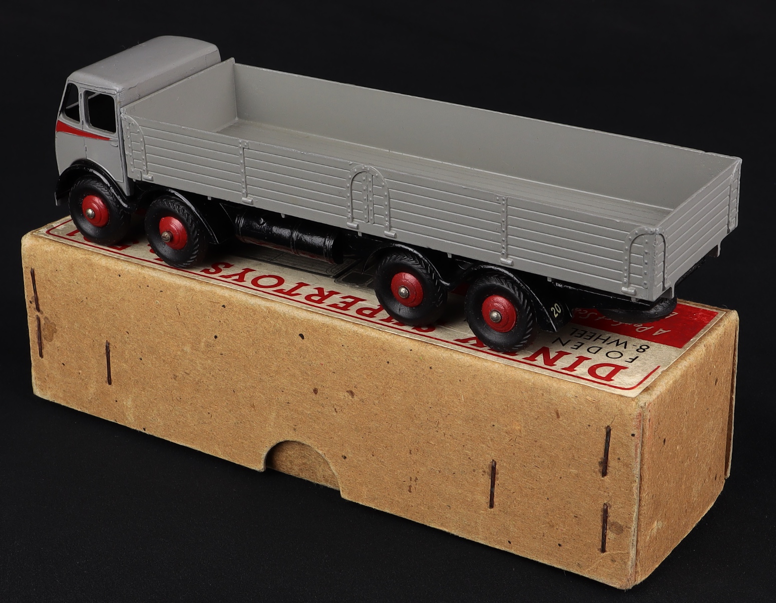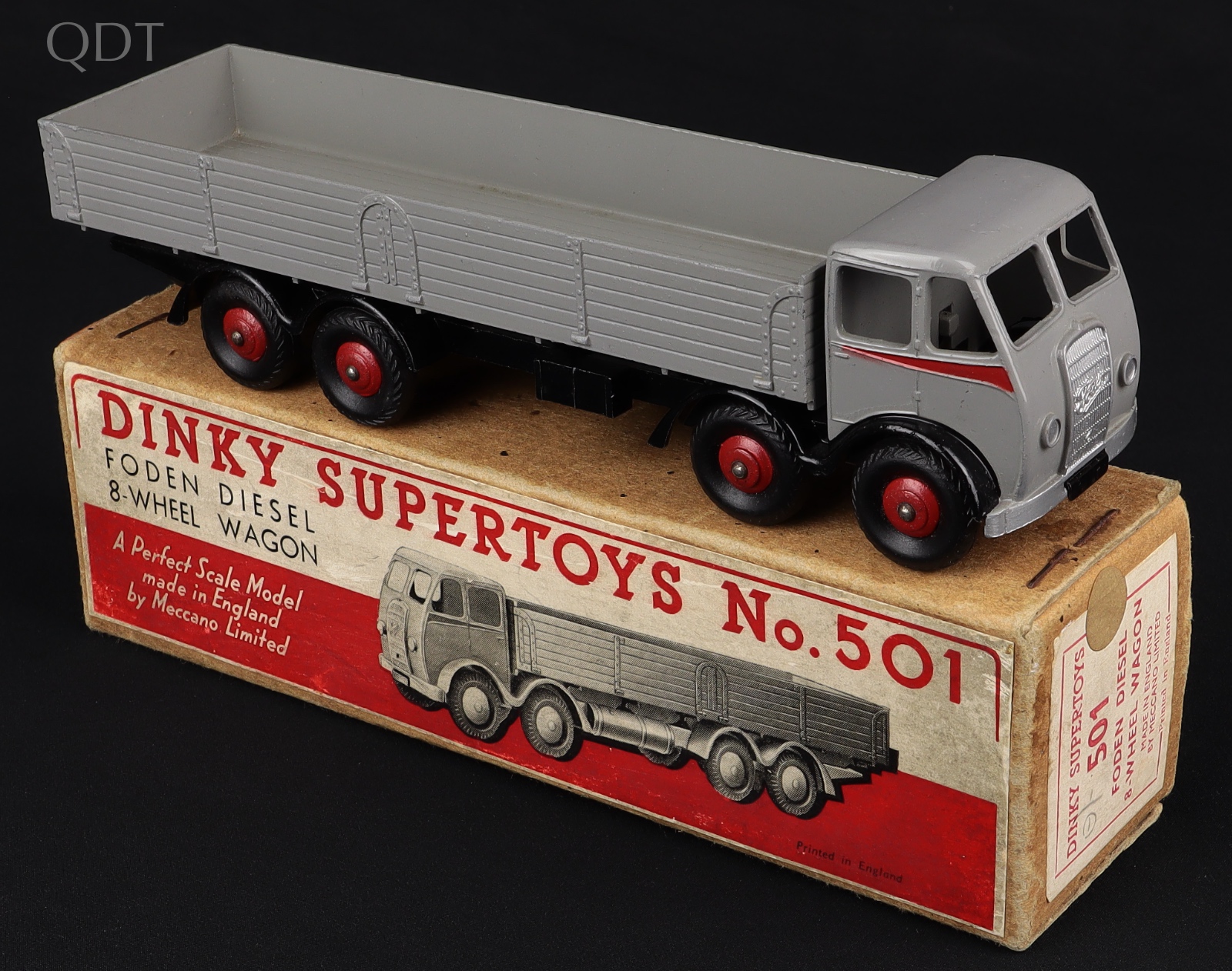 Foden Diesel 8-Wheel Wagon by Dinky . Very, very near mint/boxed. *Rare issue in light grey with black chassis, red flash & wheels, 1st type.* From The Denis Tyler Collection. QDT starting bid £750. Please note that QDT apply 12.5% buyer's commission.