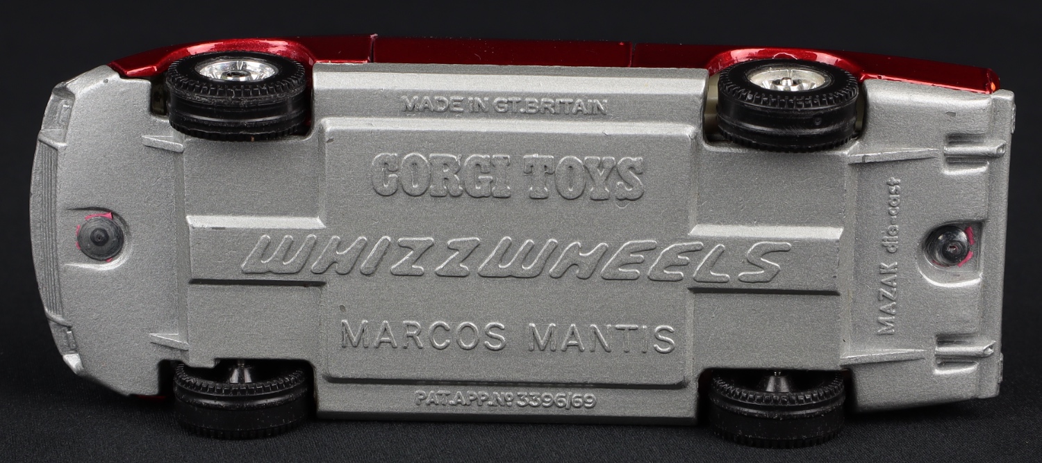 Marcos Mantis by Corgi Toys, No. 312. Very near mint/boxed. Rare find with SOLID whizzwheels. Circa 1972. Super box! From The Hastings Collection.Starting bid £200. Please note that QDT apply 12.5% buyer's