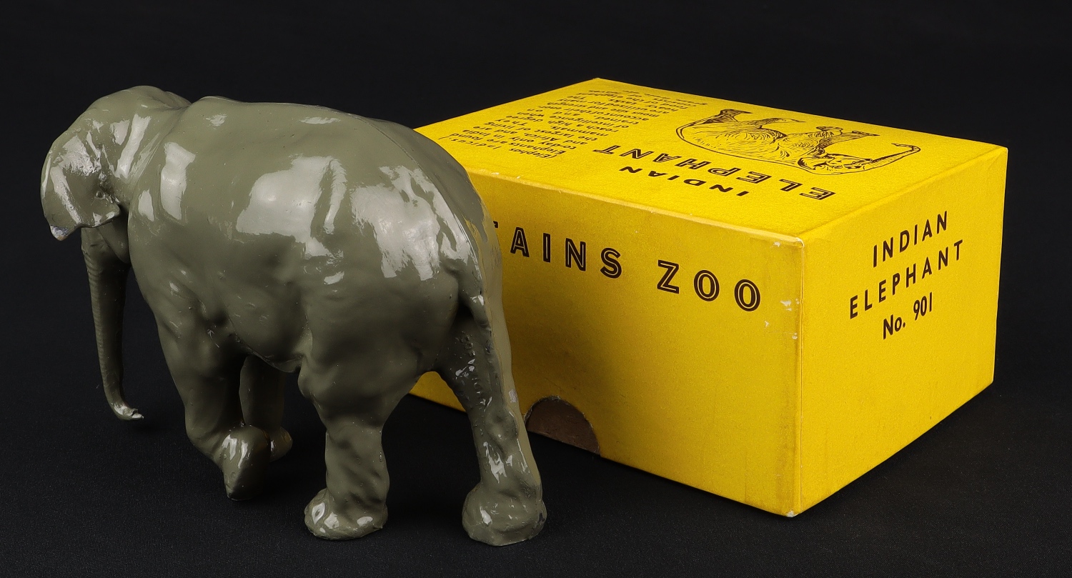 Indian Elephant by Britains Zoo Series, No. 901. Very near mint/boxed. Scarce. Super quality from The Denis Tyler Collection. Starting bid £50. Please note that QDT apply 12.5% buyer's commission.