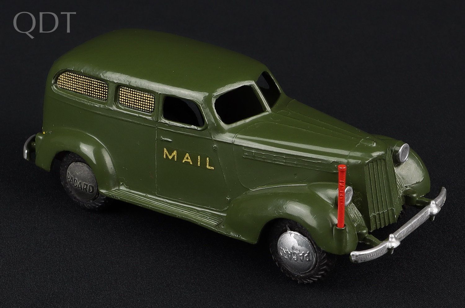Rare to come to the market place, this Tekno Packard model is finished in olive green with perfect ‘MAIL’ lettering at the sides. Cast wheels and notably perfect detailed ‘grille-effect’ windows at the sides. Silver trim.