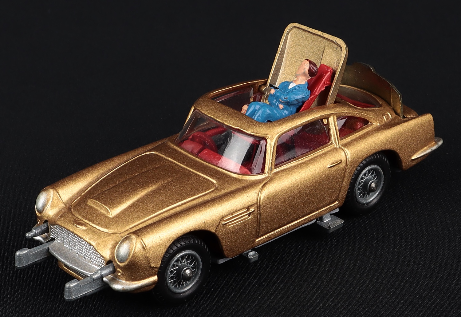 The car is fully functioning, complete with both figures. This James Bond Aston Martin has a very close to mint, all original, glossy gold finish.