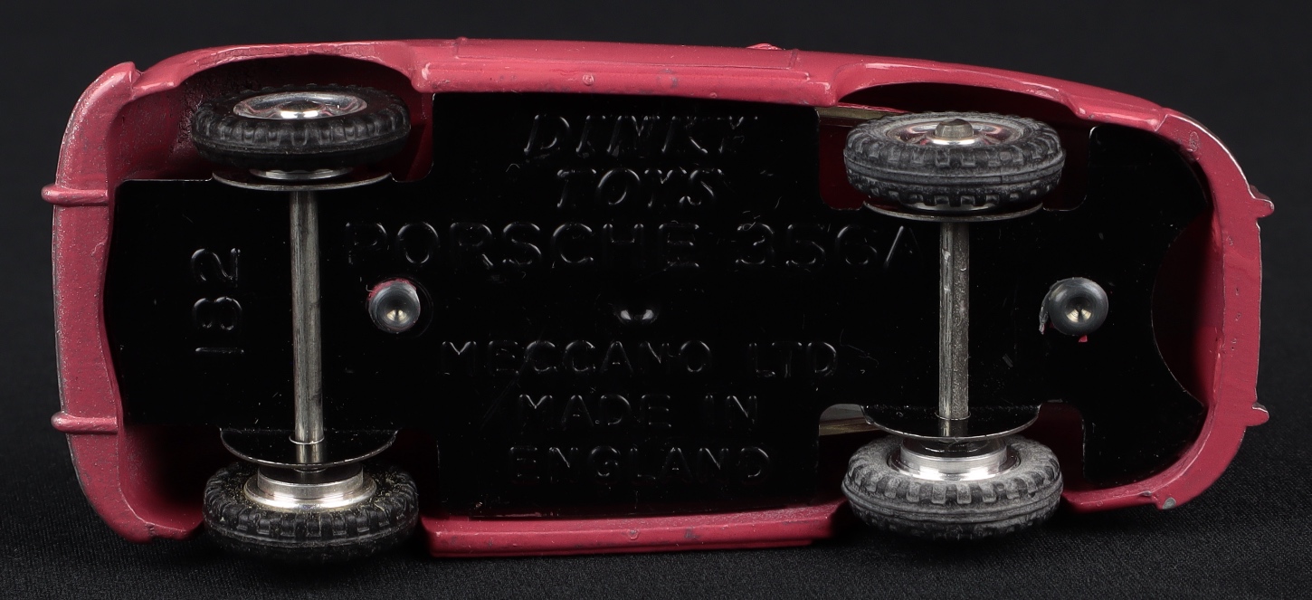 Porsche 356A Coupe by Dinky Toys, No. 182. Dusky pink version with spun wheels. Scarce. Very, very near mint/boxed. From The Berlin Collection.