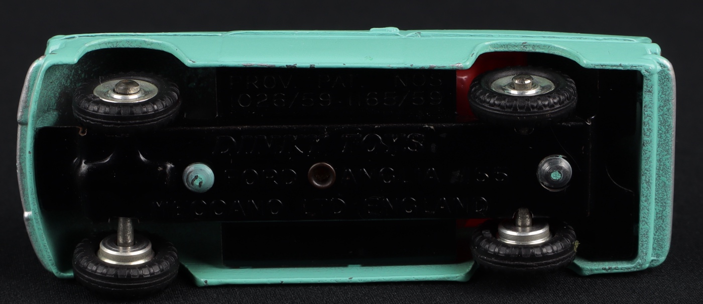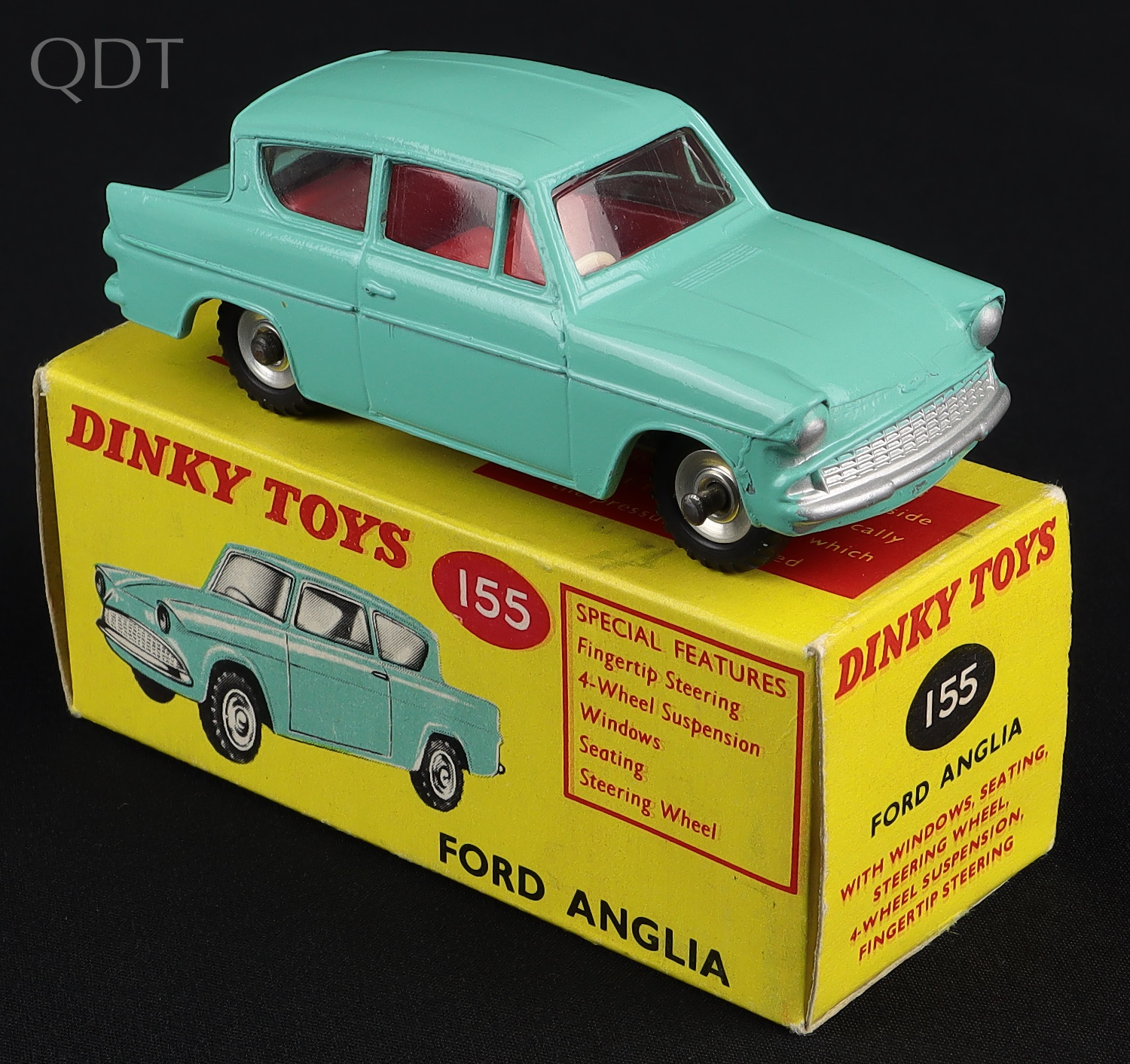 Ford Anglia by Dinky Toys, No. 155. Very, very near mint/boxed. Turquoise with bright red interior. From The Anglo-French Collection.