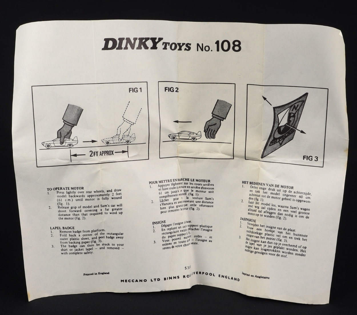 Sam's Car by Dinky Toys, No. 108. Scarce pale blue version. Very, very near mint /boxed. From a private collection.