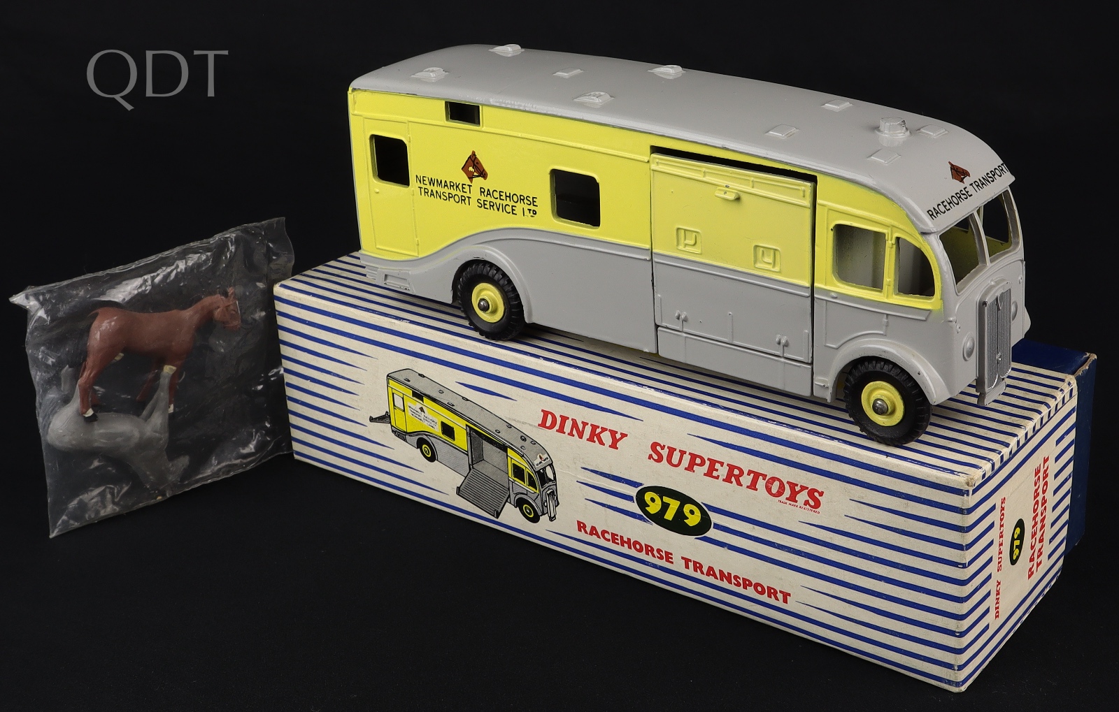 Racehorse Transport by Dinky Toys, No. 979. Very near mint/boxed. Complete with both original horses in sealed packet. Packing. Scarce. From The Rickman Collection.
