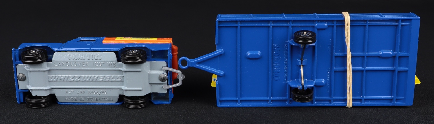 Corgi 438 Land Rover with a plastic orange tilt. Bright ‘Corgi Flying Club’ paper labels on both sides.