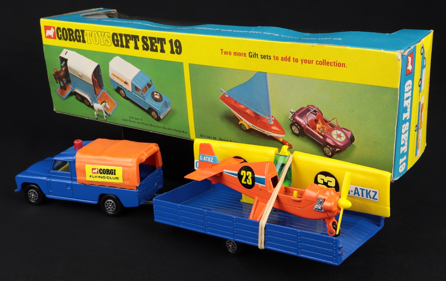 Land Rover & Nipper Aircraft 'Corgi Flying Club' Set by Corgi Toys, Gift Set No. 19. Very, very near mint- mint/boxed. Yellow wings version & polystyrene insert. Early 'Technocrat' window box. From The Berlin Collection.