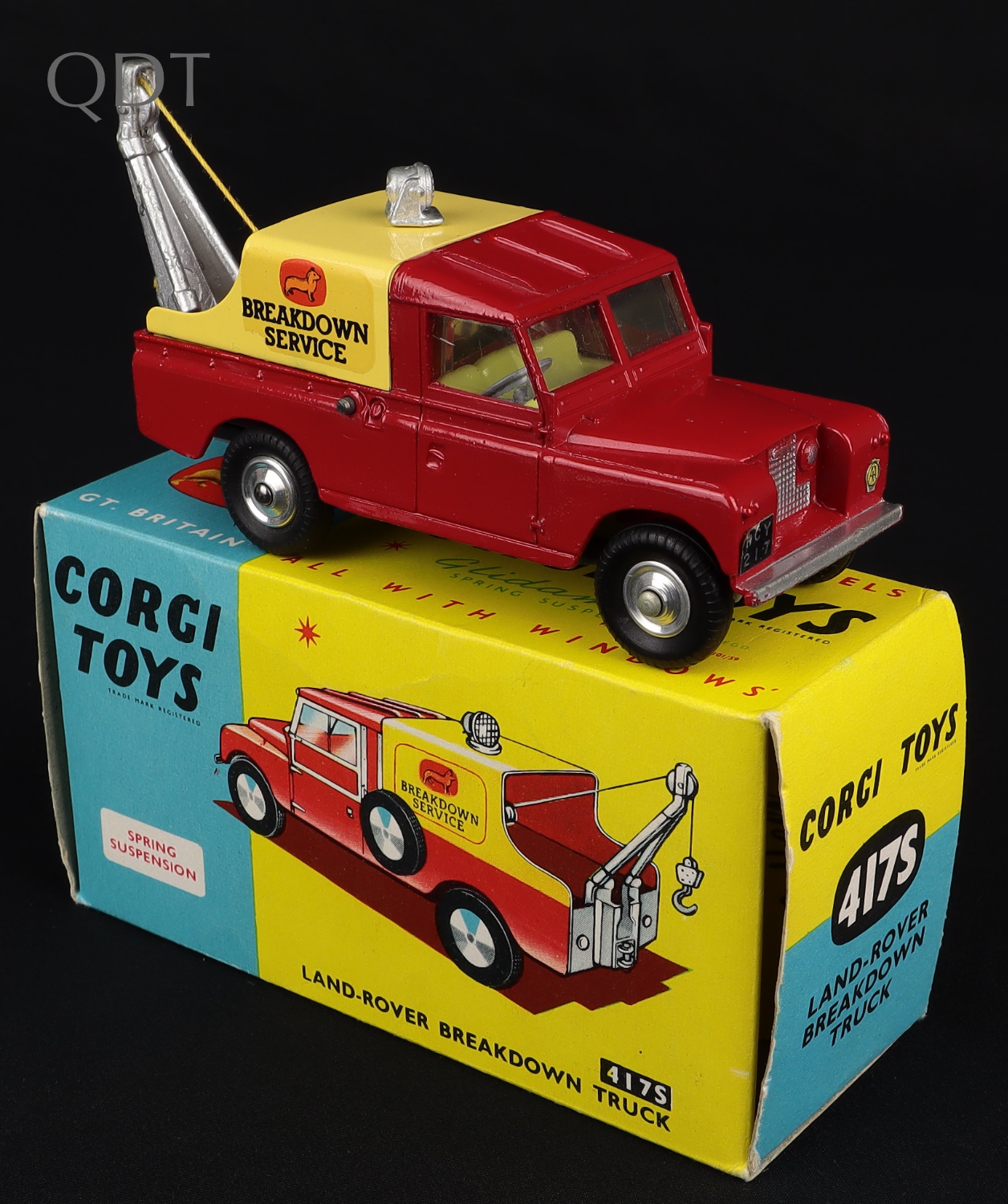 Land-Rover Breakdown Truck with suspension & tin canopy by Corgi Toys, No. 417S. Near mint plus/boxed, with packing. From Boris's Collection.